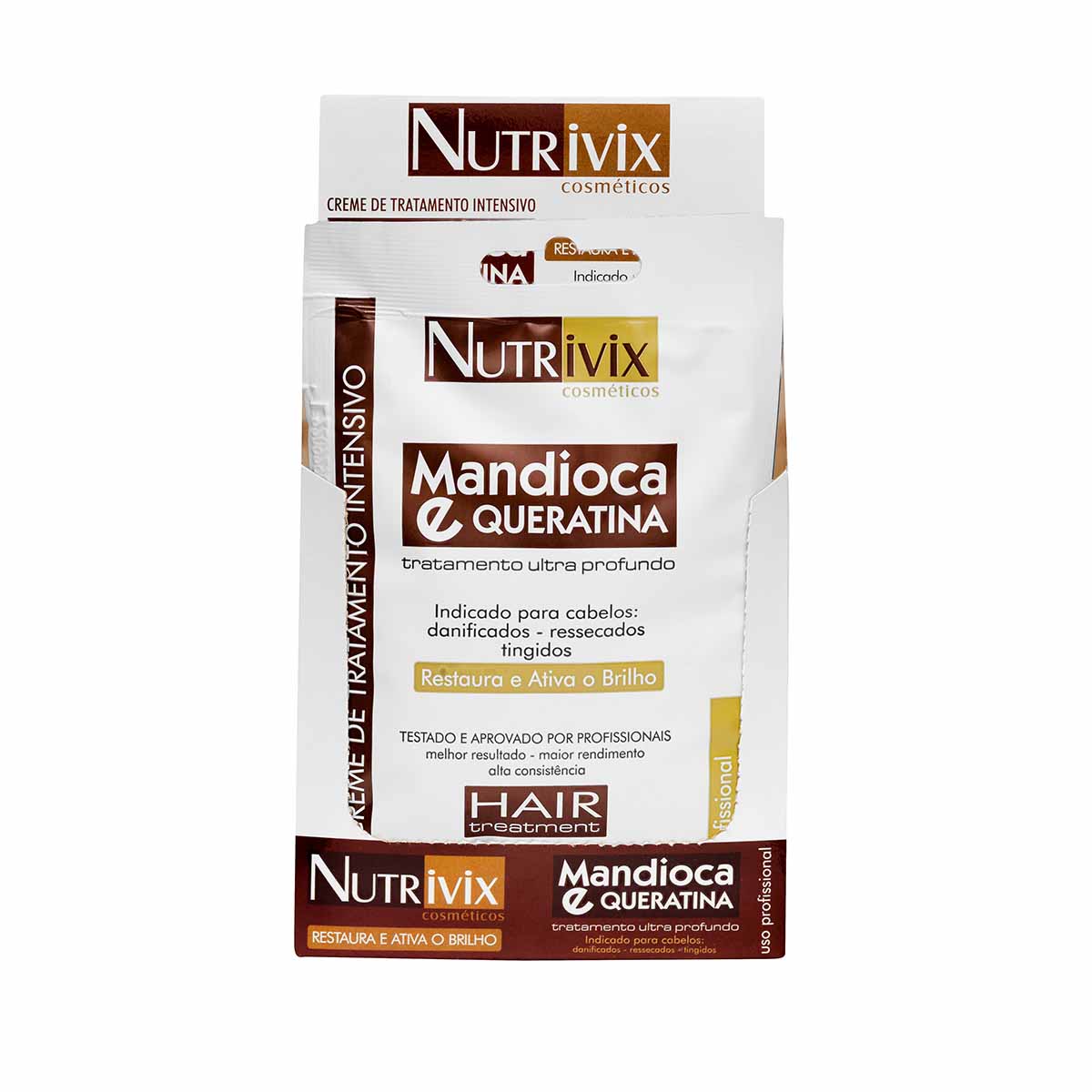 O Creme de Tratamento Mandioca e Queratina Nutrivix Cosméticos foi especialmente desenvolvido com ativos selecionados para cabelos danificados, ressecados e tingidos. Com um alto poder de nutrição, que são essenciais para saúde dos cabelos, fazendo com que eles fiquem saudáveis, macios e hidratados.