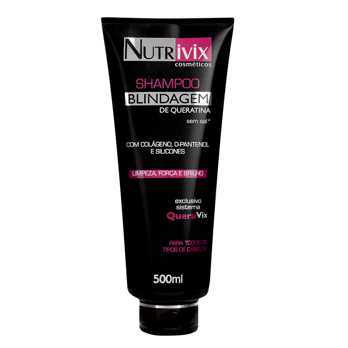 O Shampoo Blindagem de Queratina Nutrivix Cosméticos é indicado para cabelos que passaram por processos de coloração, descoloração, alisamento e progressiva. Sua fórmula possui tensoativos vegetais que não agridem e nem ressecam os fios, também possui ativos que fortalecem e regeneram os fios. O Shampoo Blindagem de Queratina limpa o couro cabeludo com eficácia, elimina as sujeiras e o acúmulo de polímeros da fibra capilar, tratando e regenerando a superfície dos cabelos que passaram por processos químicos.